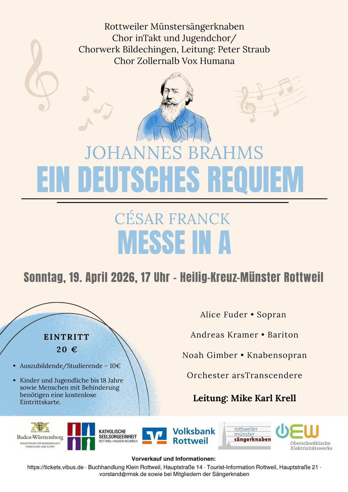 Das Konzert findet am Sonntag, den 14. Dezember 2025 um 17.00 Uhr im Heilig-Kreuz-Münster in Rottweil statt.